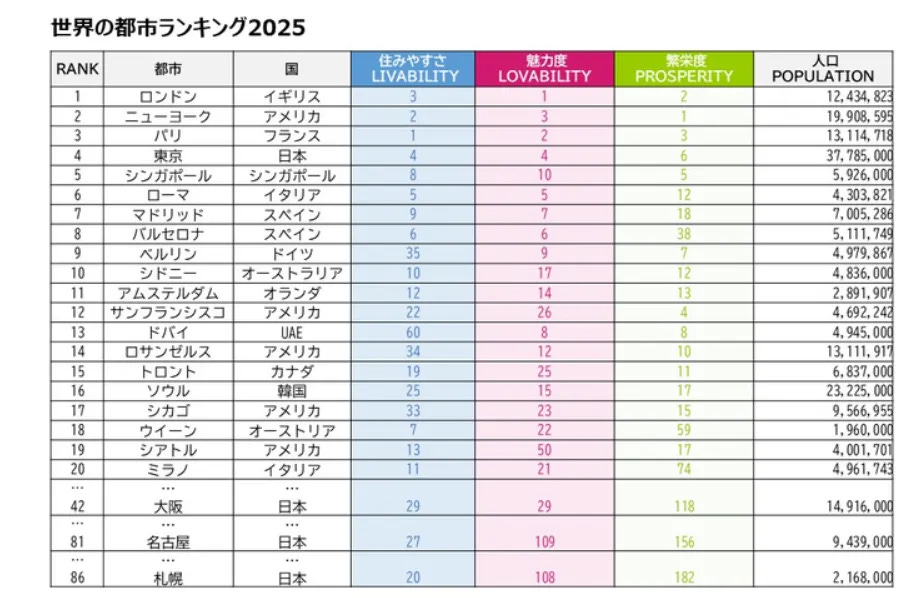值得注意的是,這三個城市的排名均較前一年上升,顯示日本城市在全球舞台上的競爭力正在增強。