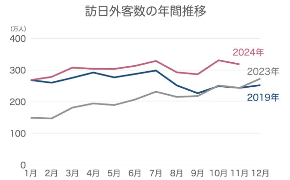 以目前的成長速度,今年全年訪日外籍人數預計將達到3,500萬人,展現了日本作為旅遊目的地的強勁吸引力。據推測,明年這一趨勢將繼續保持強勁。