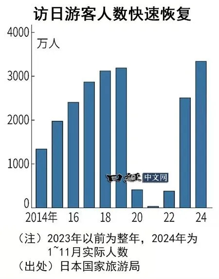 日本國家旅遊局(JNTO)12月18日發布的數據顯示,11月訪日遊客人數為318萬7000人,比去年同月增加了30.6%,刷新了11月的單月最多紀錄。