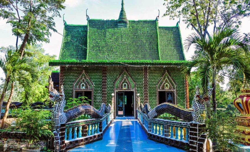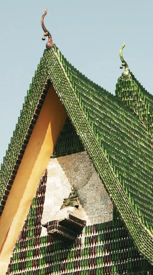 而有這樣一位泰國僧侶,他從1984年開始回收了150萬個啤酒瓶子,帶領徒弟花費三十餘年,建成了全世界規模最大的瓶子寺廟,名叫百萬瓶寺,以一寺僧人之力,為當地環保帶來了不可忽視的貢獻。