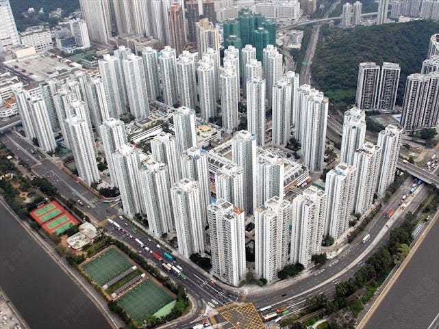 這就是當時香港最大的地產發展項目,主要包括52棟約30層高住宅樓,以及兩座大型商場的沙田第一城。