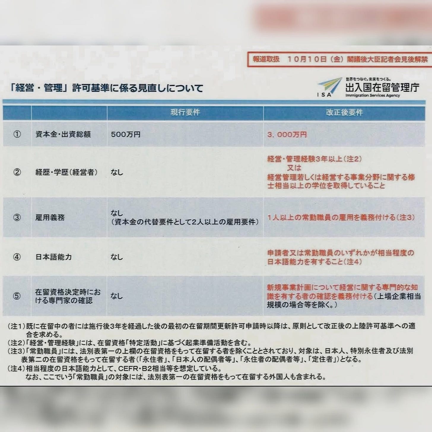 2025年10月10日,日本「經營管理簽證」的新申請標準正式在入管局網站公佈了。該規定將從10月16日開始正式實施,由於與舊要求相比出現了大幅度嚴格化的調整,一時間在外國人圈中激起軒然大波。