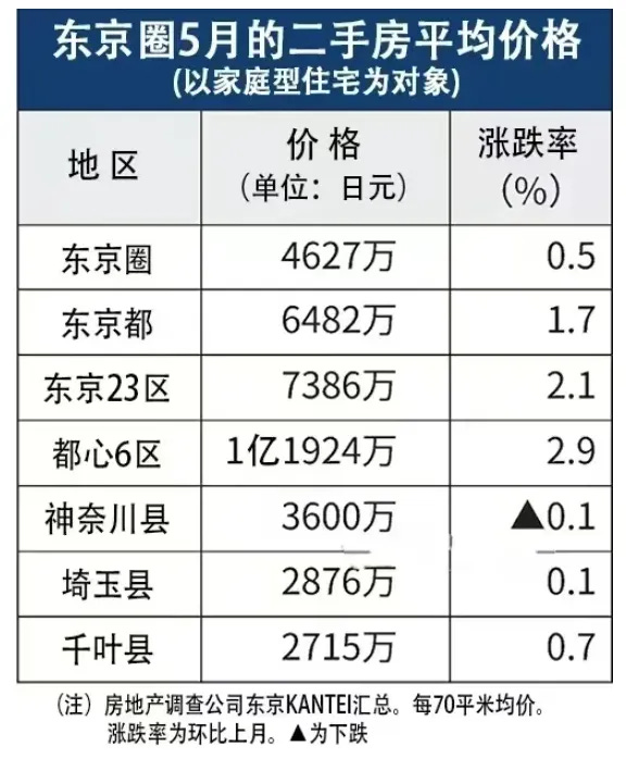 以東京為例,其房價相較於英美加澳的一線城市有明顯的優勢。 2024年5 月東京圈二手房每平米成交價約66.1 萬日圓(約 33 萬元),即使是東京最核心的23 區,平均成交房價也僅105.5 萬日圓(約 5.27 萬元)/ 平米。
