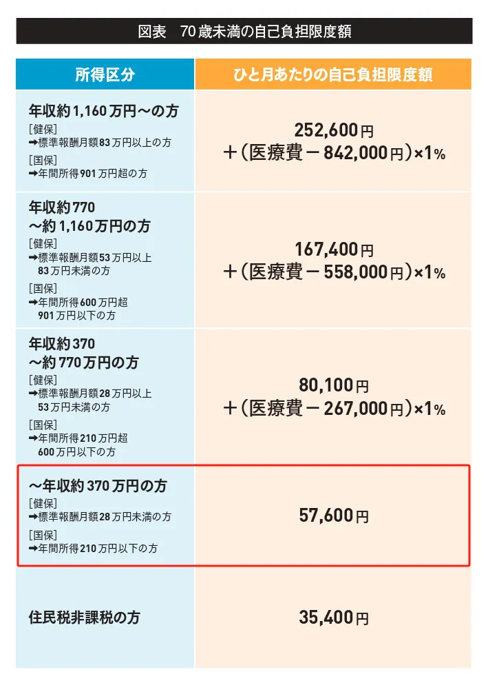 這就和高額醫療制度息息相關。日本高額醫療制度規定,超出一定金額的醫療費用無需支付,金額則根據收入的區間來計算。