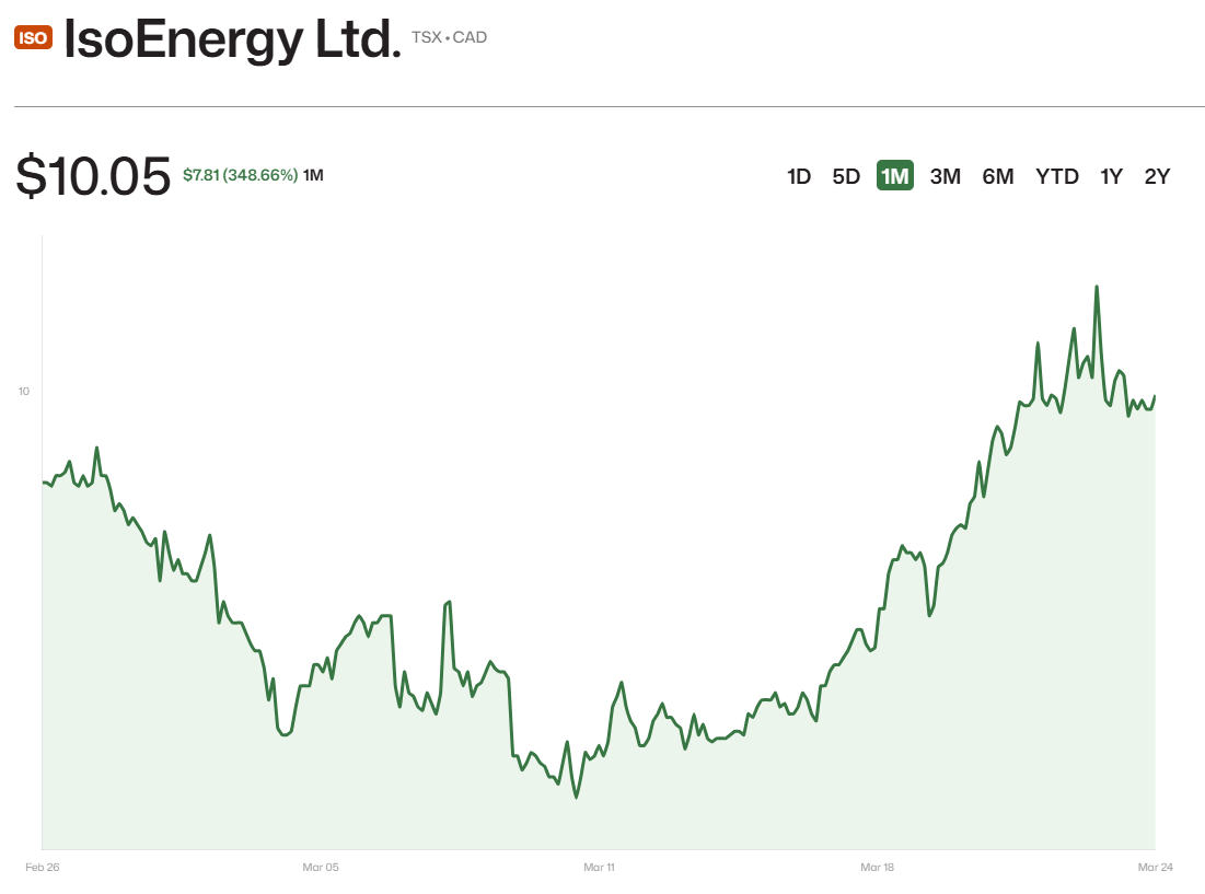 因此,這波核電復興能否持續,取決於AI淘金客們,能否開發出受歡迎的終端產品。這也將是決定人工智能是否會泡沫化的關鍵,我們在清單中介紹並推薦 ISO Energy,結果3月24日單日狂升279.25%。