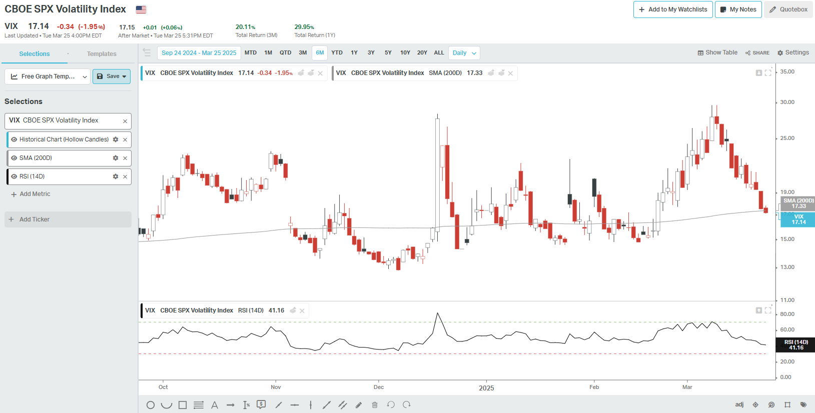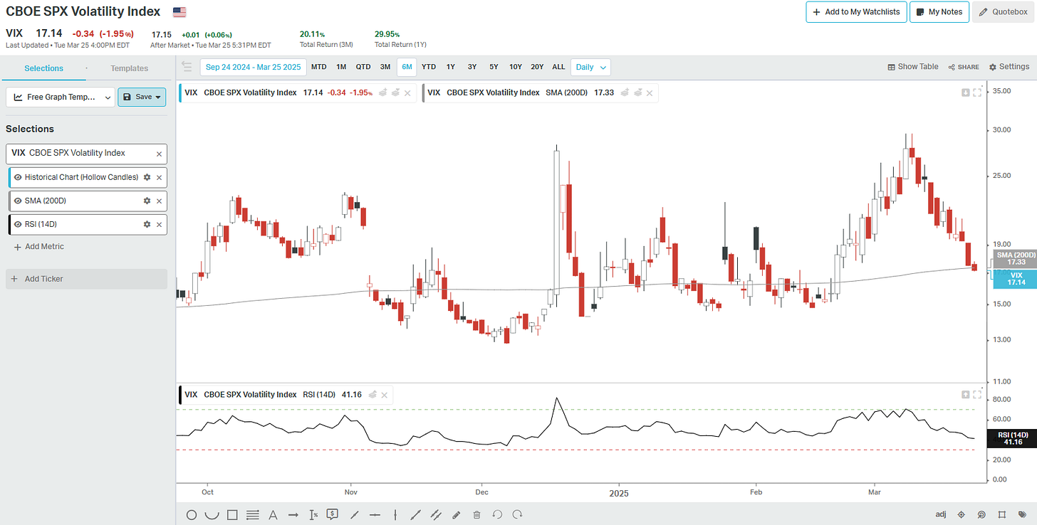 追蹤芝加哥選擇權交易所波動性指數(VIX,即恐慌指數)的期貨顯示,在4月2日關稅前後,該指數會上升,但之後會下降。