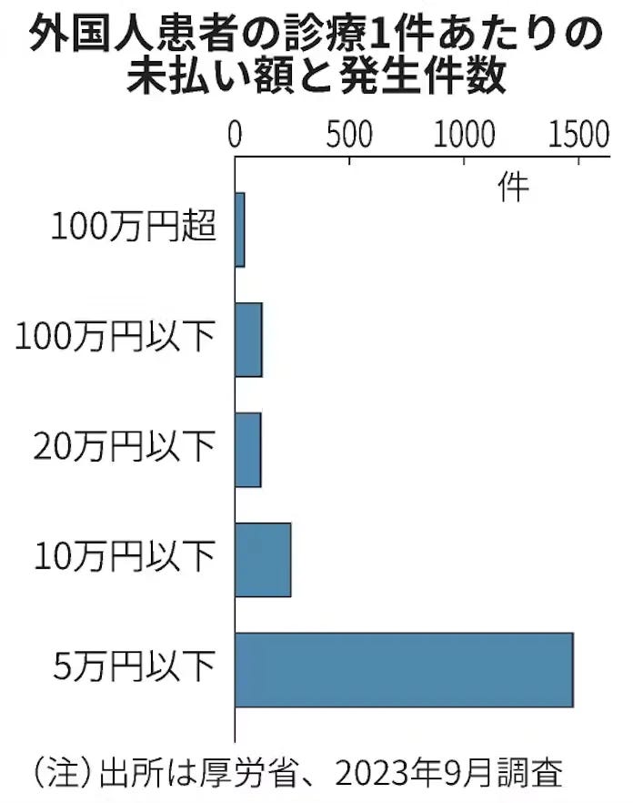 根據日本厚生勞動省的最新數據,2023年9月,在接收外國患者的日本醫院中,18.3%遇到拖欠醫療費的患者,每家醫院平均自掏腰包墊付50萬日元。
