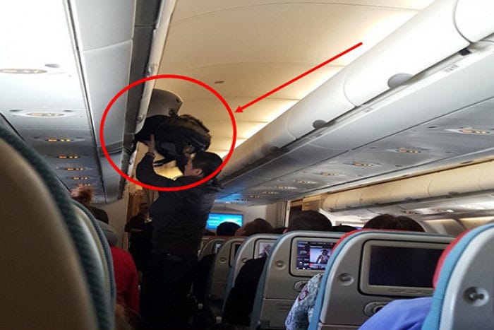 趁著對方熟睡,劉某悄悄走到前排,打開頭頂行李艙把行李拿回自己座位。但他沒想到,這一幕全程被受害者的妻子看在眼裡。