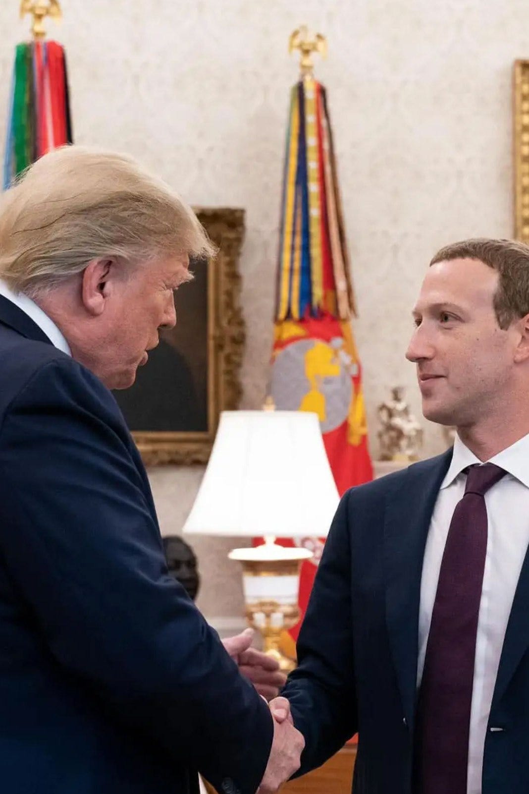 在特朗普今年初的就職典禮當中,Meta的Mark Fuckerberg、Apple Tim Cook、Google的Sundar Pichai都坐在前排,斥資100萬美元捐款、頻繁造訪Mar-a-Lago,似乎成功博得了這位多年來被他們審查的總統好感。