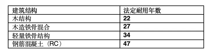 以下是常見結構的法定耐用年數: