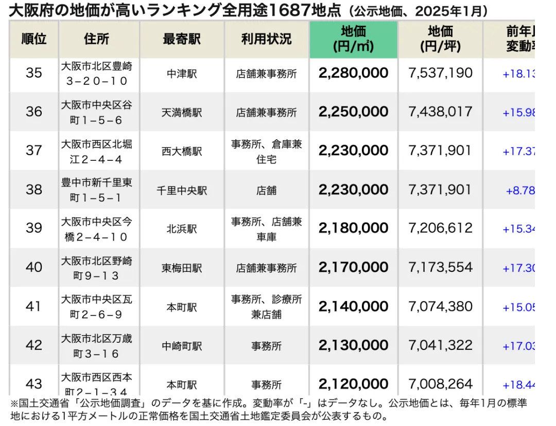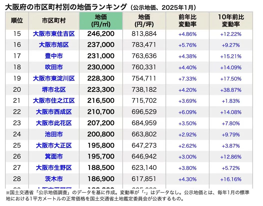 綜上所述,大阪府2025年地價整體上漲,但區域分化明顯。投資者在決策時應綜合考慮區域發展趨勢、交通便利性以及潛在風險。