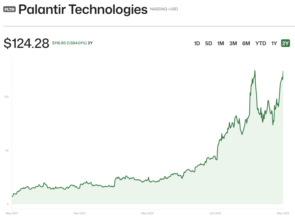 Palantir 5月5日週一公佈最新財報,PLTR 的P/S 高達 614 倍,幾乎是整個科技業估值最高的公司,比起Nvidia才37本益比。這個價格不只是貴——它幾乎代表了一種AI信仰押注。