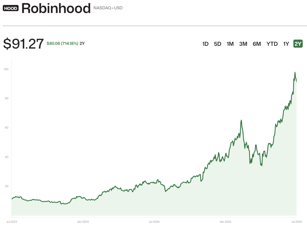 細行報告 —— 第二季必勝股Robinhood又大獲全勝(四)Robinhood的萬億野心:鏈上紐交所Kenji SanJul 09, 2025∙ Paid3Share最近,OpenAI的一則緊急聲明,明確表示從未將公司的股權進行任何形式的代幣化。然而,這項聲明卻意外地讓背後大火的股票代幣交易平台Robinhood浮現了水面。2022年,Robinhood開始區塊鏈應用的開發。 2025年6月30日,他們在法國正式推出股票代幣化服務,為歐洲用戶提供超過200種美國股票和ETF(交易型開放式指數基金)的代幣交易,包括英偉達、蘋果、微軟等科技領導者。所有交易都在區塊鏈上進行,支援每週5天、每天24小時的交易模式,且繼續零佣金。Continue reading this post for free, courtesy of Kenji San.Claim my free postOr purchase a paid subscription.